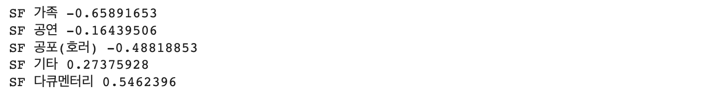 genre_name = ['SF', '가족', '공연', '공포(호러)', '기타', '다큐멘터리', '드라마', '멜로로맨스', '뮤지컬', '미스터리', '범죄', '사극', '서부극(웨스턴)',