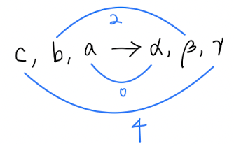 $c, b, a$를 통해 $\alpha, \beta, \gamma$를 예측하도록 바뀜.
