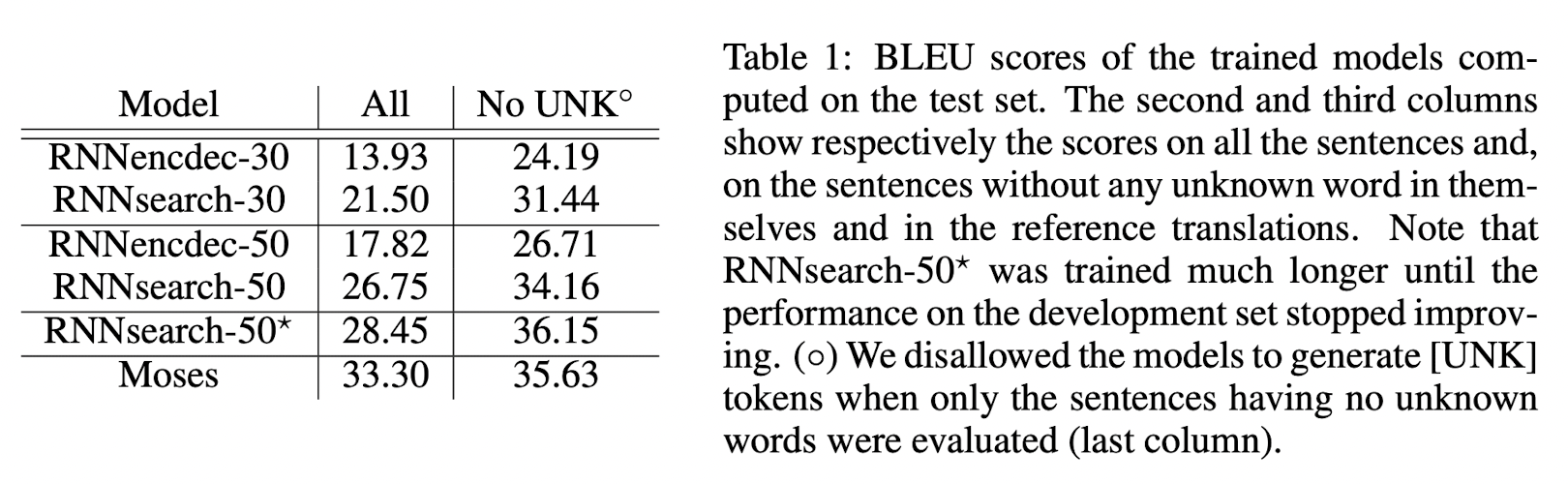 결과를 보면 RNNsearch 모델의 성능이 더 좋은 것을 알 수 있습니다.