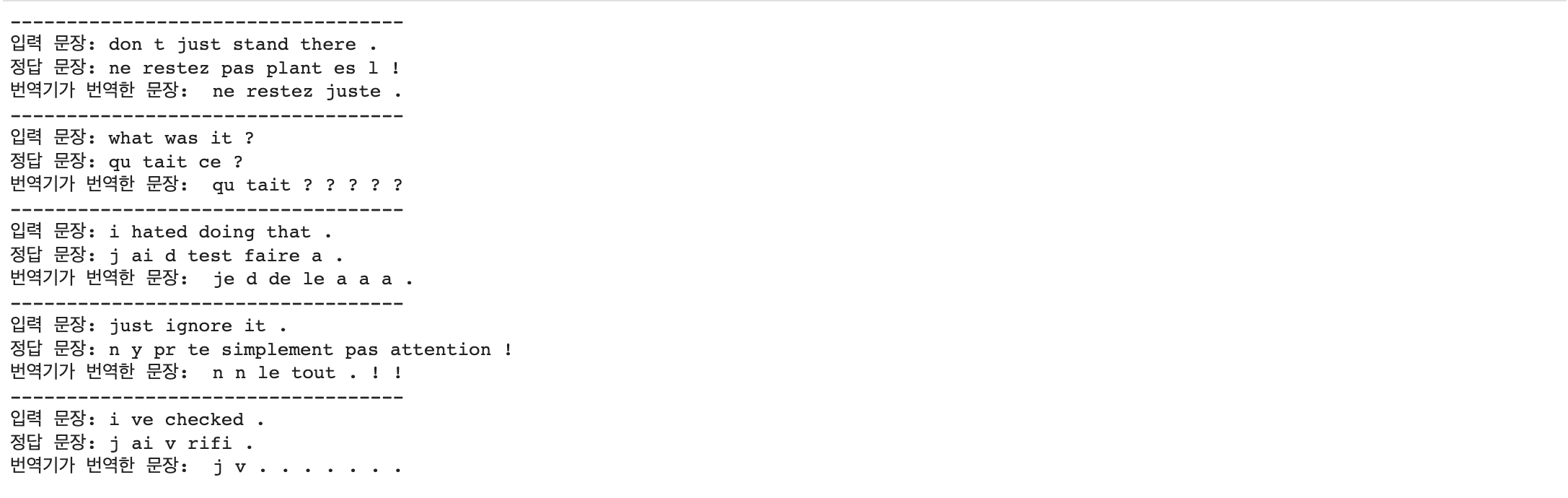 print('번역기가 번역한 문장:', decoded_sentence[:len(decoded_sentence)-1])
